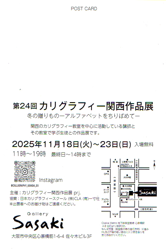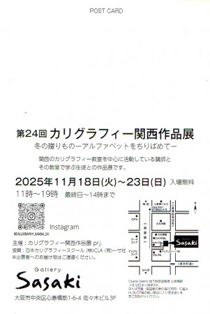 ギャラリー ササキ商店 カリグラフィー作品展 宛